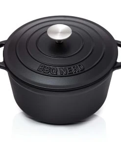 Die Patina, die sich auf der Oberfläche ausbildet, verleiht jedem Gericht ein besonderes Aroma und wirkt wie eine moderne Antihaftbeschichtung. Der gusseiserne Topf von BBQ-Nerd© ist durch die zusätzliche Emaille-Beschichtung besonders pflegeleicht.