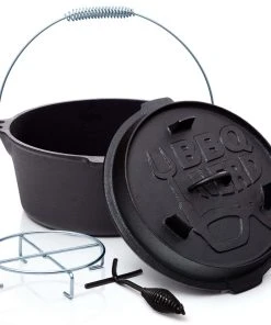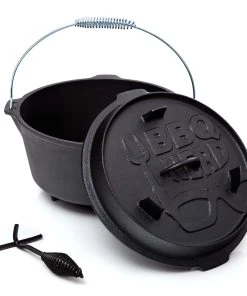 - DUTCH OVEN PREMIUM SET – Der feuerfeste Topf aus robustem Gusseisen ist ein Allrounder zum Kochen, Backen, Braten, Schmoren und Garen! Du kannst den Dutch Oven ins offene Feuer stellen, über dem Lagerfeuer aufhängen oder auf dem Grillrost benutzen.