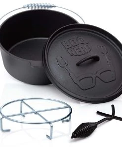 - DUTCH OVEN STARTER SET – Der feuerfeste Topf aus robustem Gusseisen ist ein Allrounder zum Kochen, Backen, Braten, Schmoren und Garen! Du kannst den Dutch Oven ins offene Feuer stellen, über dem Lagerfeuer aufhängen oder auf dem Grillrost benutzen.