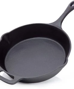 Die gusseiserne Pfanne ist ein Profiwerkzeug für die Küche. Zudem ist sie ein wahrer Allrounder, was ihr Einsatzgebiet betrifft: Steak, Filet, Lachs, Pizzabrot, Hackbällchen in Tomatensoße, Köttbullar, Geschnetzeltes, Kartoffelpuffer, Reis mit Gemüse und viele weitere Gerichte sind möglich! Achte darauf, dass das Gusseisen recht schwer ist und der Griff beim Kochen sehr heiß werden kann.