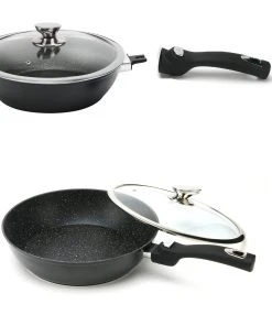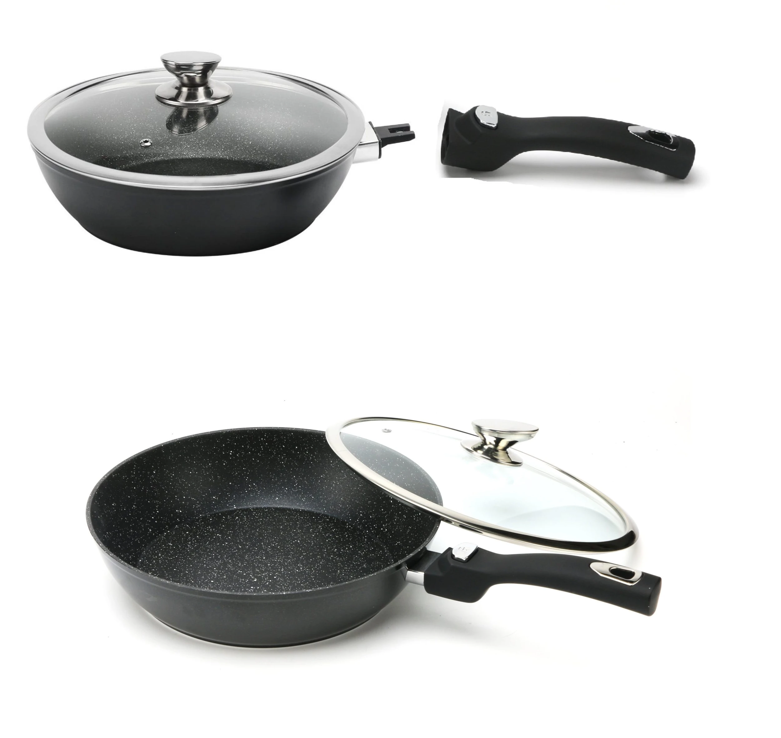 Wok Pfanne Induktion Deckel abnehmbarer Griff Ø30cm Marmor