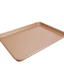 Ob als Keksblech für hausgemachte Riesen-Cookies, als praktisches Brötchenblech oder als Dörrblech für frisches Gemüse – dieses einfache Backblech aus dem Hause CHEFMADE ist beim Backen universell einsetzbar. Dank des großflächigen, fast quadratischen Formats finden besonders viele Backwaren ihren Platz auf dem Blech. Die integrierte Griffmulde, die lebensmittelechte Antihaftbeschichtung sowie die hervorragende Hitzeverteilung des ultradünnen Karbonstahls machen das Utensil zu einer Backform in Profiqualität. Lieblingsteig anmischen, auf dem Backblech positionieren und ab damit in den Ofen!