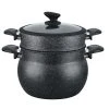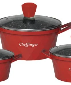 Mit diesem Geschirrset in Diamant Design können Sie die köstlichsten Gerichte zubereiten. Das Set besteht aus drei Töpfe mit Deckel. Die Töpfe sind aus Aluminium Guss gefertigt und mit einer 3-Schicht-Marmorbeschichtung versehen. Sie können für alle Arten von Wärmequellen verwendet werde. Die Deckel bestehen aus gehärtetem Glas.