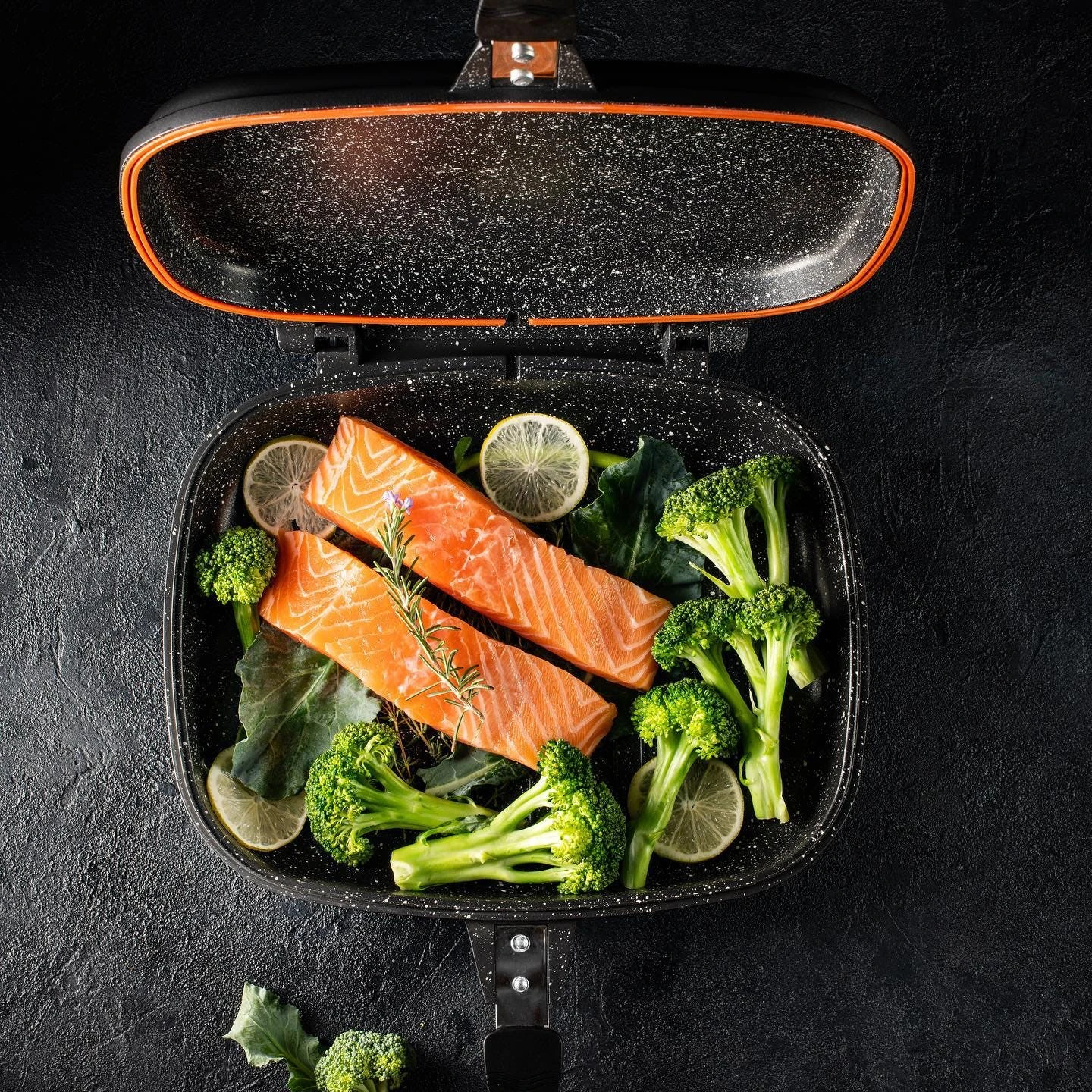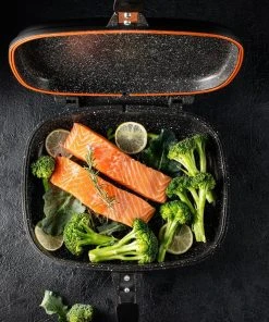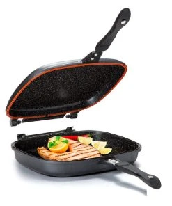 weitere Details: -Keine Fettspritzer -Weniger Rauch und Gerüche -Problemloses Reinigen – angenehmes Garen -Geeignet für Elektro, Gas und Glaskeramik -Hitzebeständige Marmorbeschichtung und Griffe -Gleichmäßige Wärmeverteilung -Silikondichtung, besser verschließbar -Außen: Hitzebeständige Marmorbeschichtung -Innen: Marmorbeschichtung -Softgriff (Magnetischer Schließmechanismus)