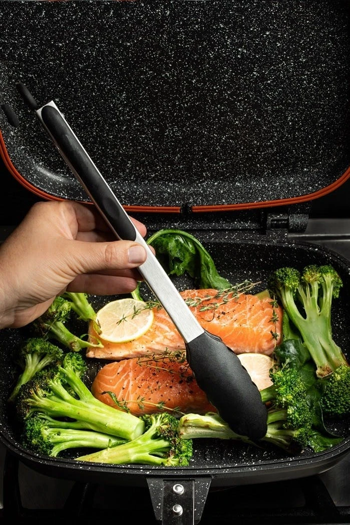 MULTI-PFANNE: Ob als Bratpfanne, Grillpfanne oder Partypfanne – genießen Sie ganz ohne Pfannenwender oder Bratenwender einfaches geruchfreies Braten in Ihrer Küche!