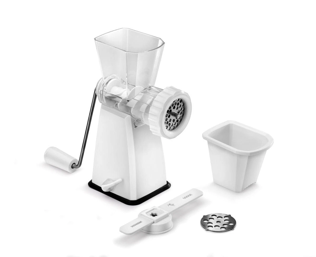 Mit 2 Einsätzen zum zerkleinern von Fleisch, Nüssen und Gemüse.
