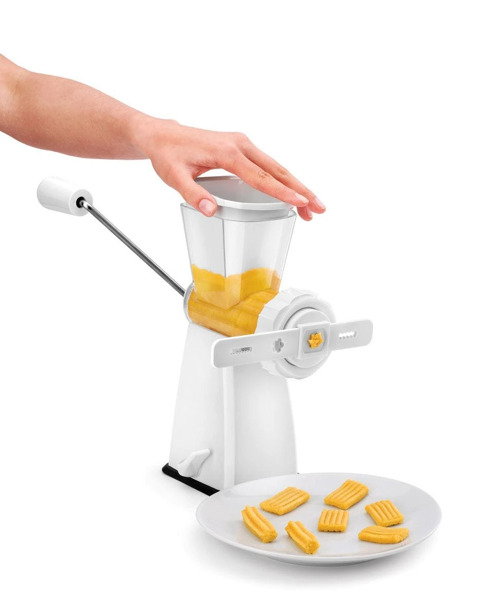 Plus einem zusätzlichen Gebäckeinsatz für Spritzgebäck, Kekse und Nudeln.