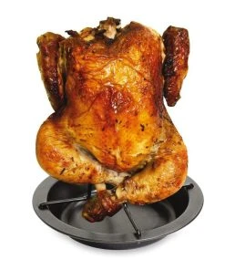 Ideal geeignet für Brathähnchen. Mit diesem Halter gelingen Brathähnchen kinderleicht.