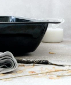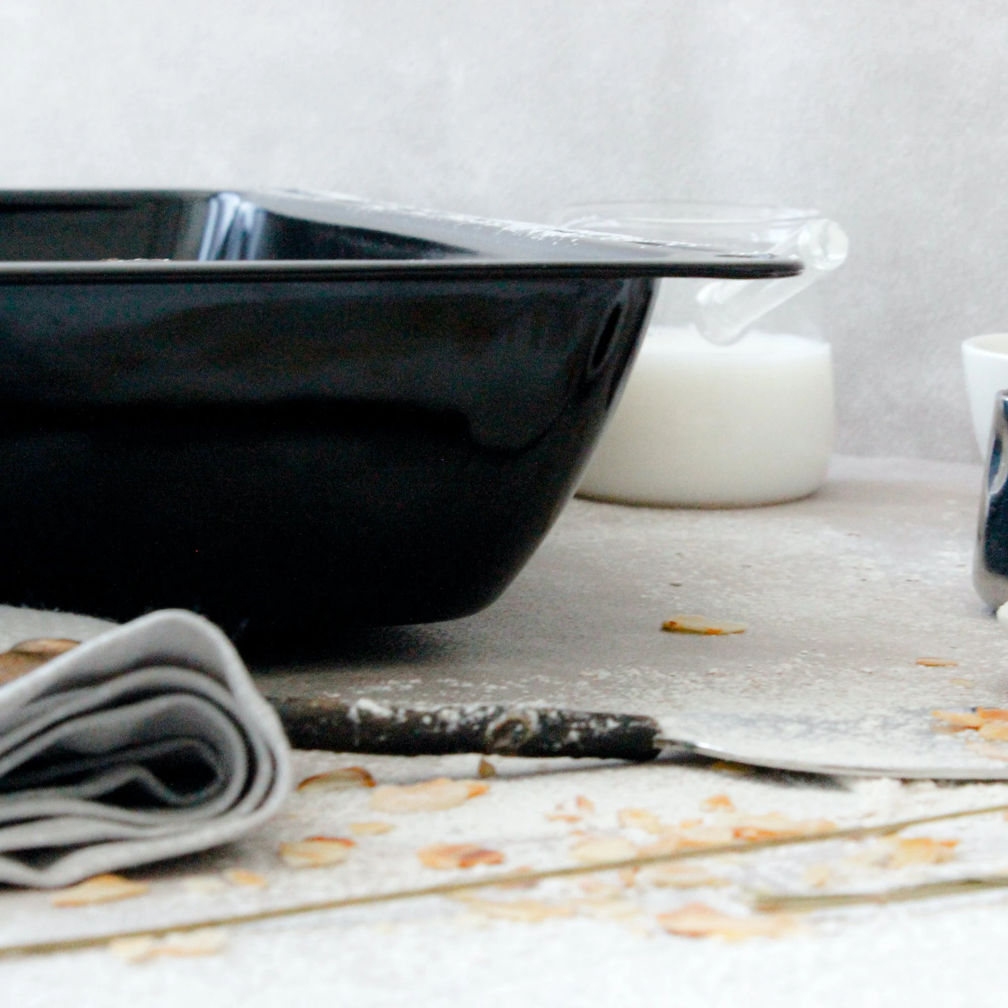 - Blech mit Aussparungen an den Seiten und abgerundeten, weichen Kanten. Es ist dank seiner emaillierten Oberfläche leicht zu reinigen und kann viele Jahre verwendet werden