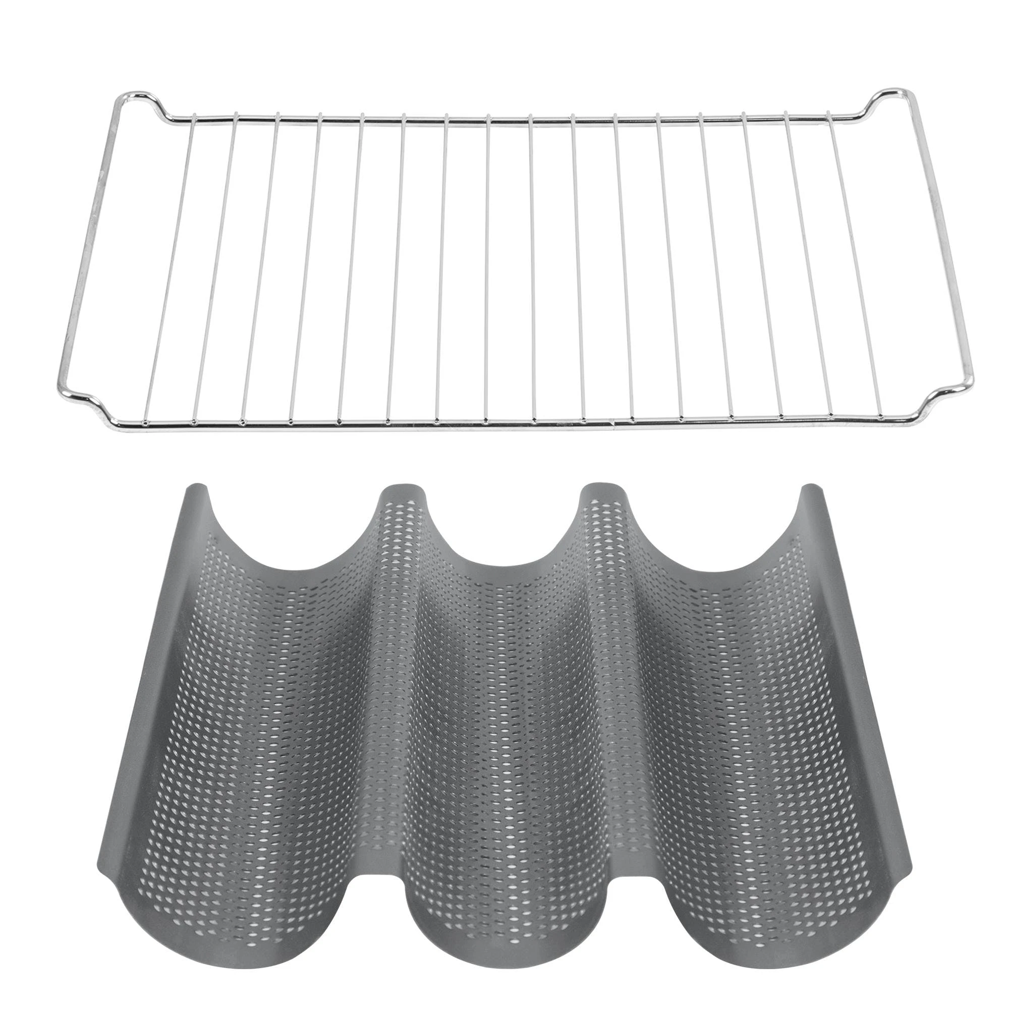 •Dank der Löcher darauf sorgt es für Wärmeleitung und Sauerstoffzufuhr zu allen Oberflächen des Teigs, so dass das Brot mit der Konsistenz von Unter- und Oberseite gebacken wird.•445 x 340 mm Backofenrost passt für, Whirlpool-Gruppe, Ignis, Bauknecht, Indesit, Algor, Neckermann, Lloyds. Kompatibel mit 481241838128, 481241838138, 481931018457, 481010426479, 481241838122, 481941838367, 481010683241, 481010539881, 481010764532, 481010683239, 481010539879, 481241838141, 481245819334, 48194581999, 481010683241, 481010683239, 853188801000, 4011577, 481241838161,481010764532, 02711885, C00345048 C00327799, C00374896•Es ist aus hochwertigem Material gefertigt, langlebig und praktisch für den langfristigen Einsatz.•Dank der antihaftbeschichteten Oberfläche des baguette-backblechkönnen Sie es einfach bedienen und reinigen?WICHTIG: Messen Sie auch ihr Backofen/Herd nach oder fragen Sie uns vor Ihrer Bestellung, ob das Gitter für Ihren Backofen/Herd passend ist.