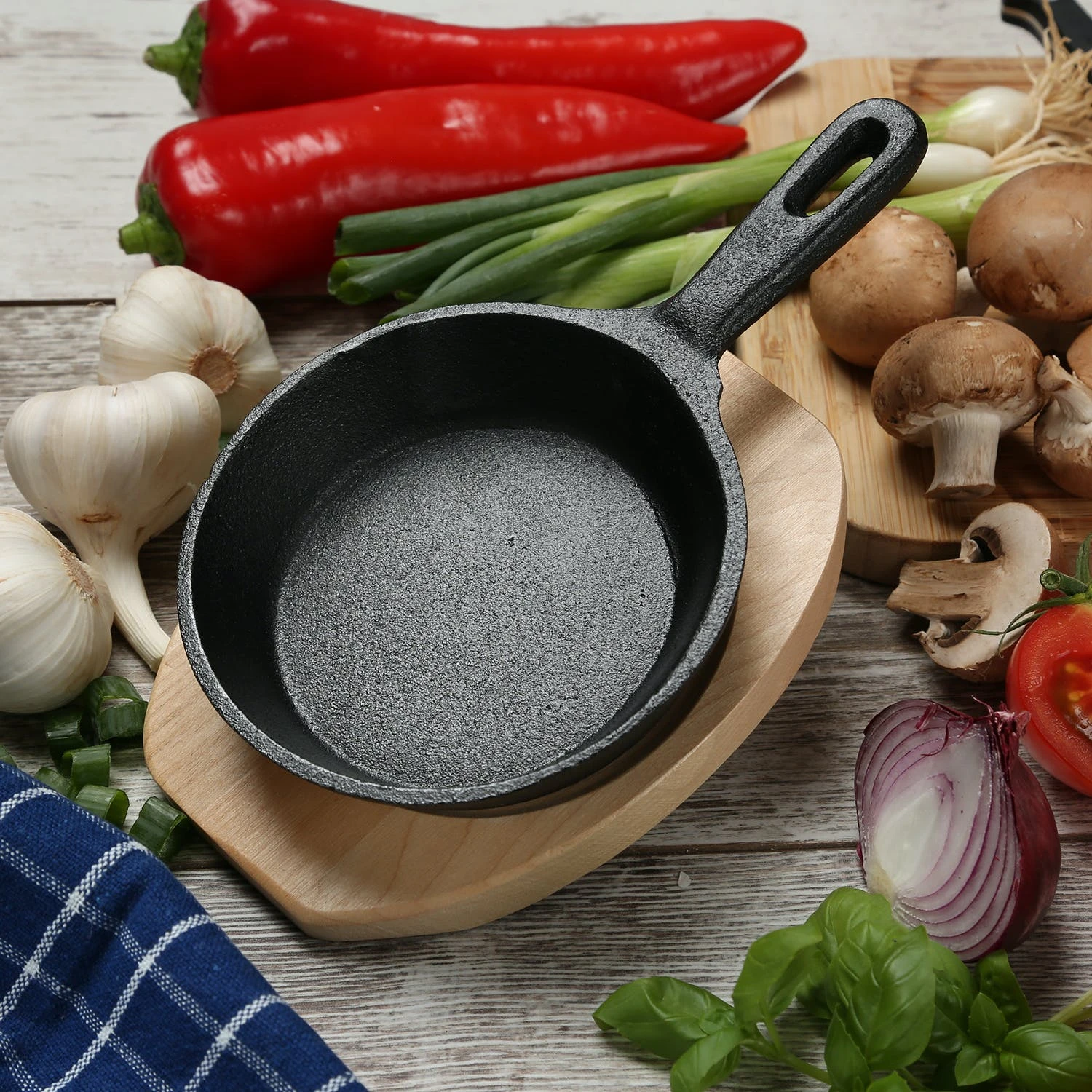 Das Gusspfännchen inkl. Holzuntersetzer hat einen Griff, damit Du sie sicher tragen und auch aufhängen kannst. Ob Hausmannskost oder Haute Cuisine, leckere Bratkartoffeln oder das perfekte Steak. Die Gusspfanne mit Stiel ist in mehreren Größen erhältlich und eignet sich somit für Gerichte und Portionen jeder Größe.