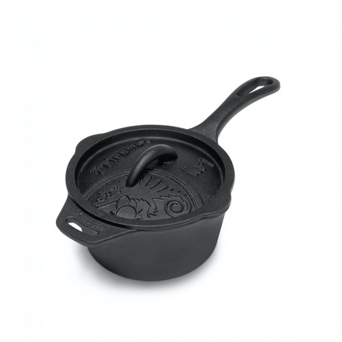 Der Soßentopf aus hochwertigem Gusseisen ist für Deine Mahlzeiten über dem offenen Feuer und in der heimischen Küche unentbehrlich. Weil gusseisernes Kochgeschirr extrem langlebig ist, kommt es auch bei Kochprofis zum Einsatz. Einmal ausprobiert, wirst Du auf den Soßentopf und seine zahlreichen Vorteile nicht mehr verzichten wollen.