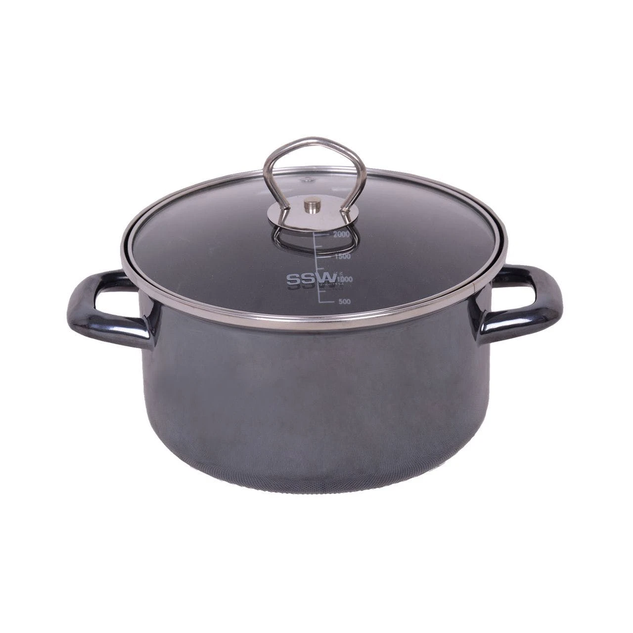 Der Kochtopf aus der Serie Black Tiger von SSW ist perfekt für Allergiker geeignet, da von innen und Außen emailliert ist, somit somit nickelfrei. Die kleine Größe eignet sich super für kleine Gerichte. Der edle Glasdeckel mit Chromrand und einem Dampfloch, wird der neue Hingucker auf dem Herd.