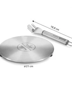 Dient dazu, damit die üblichen nicht magnetischen Kochgefäße auf den Induktionskochfeldern verwendet werden können, für Kochgeschirr aus Aluminium, Edelstahl, Gusseisen, Glas sowie Keramik geeignet. Aus erstklassigem rostfreiem Edelstahl hergestellt, mit Aluminiumkern und mit abnehmbarem Griff für sichere Handhabung. Spülmaschinenfest.