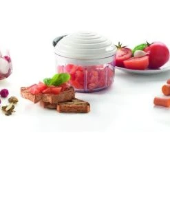Mit dem Obst- und Gemüsehacker können Sie schnell Gemüse, Früchte und Nüsse hacken.