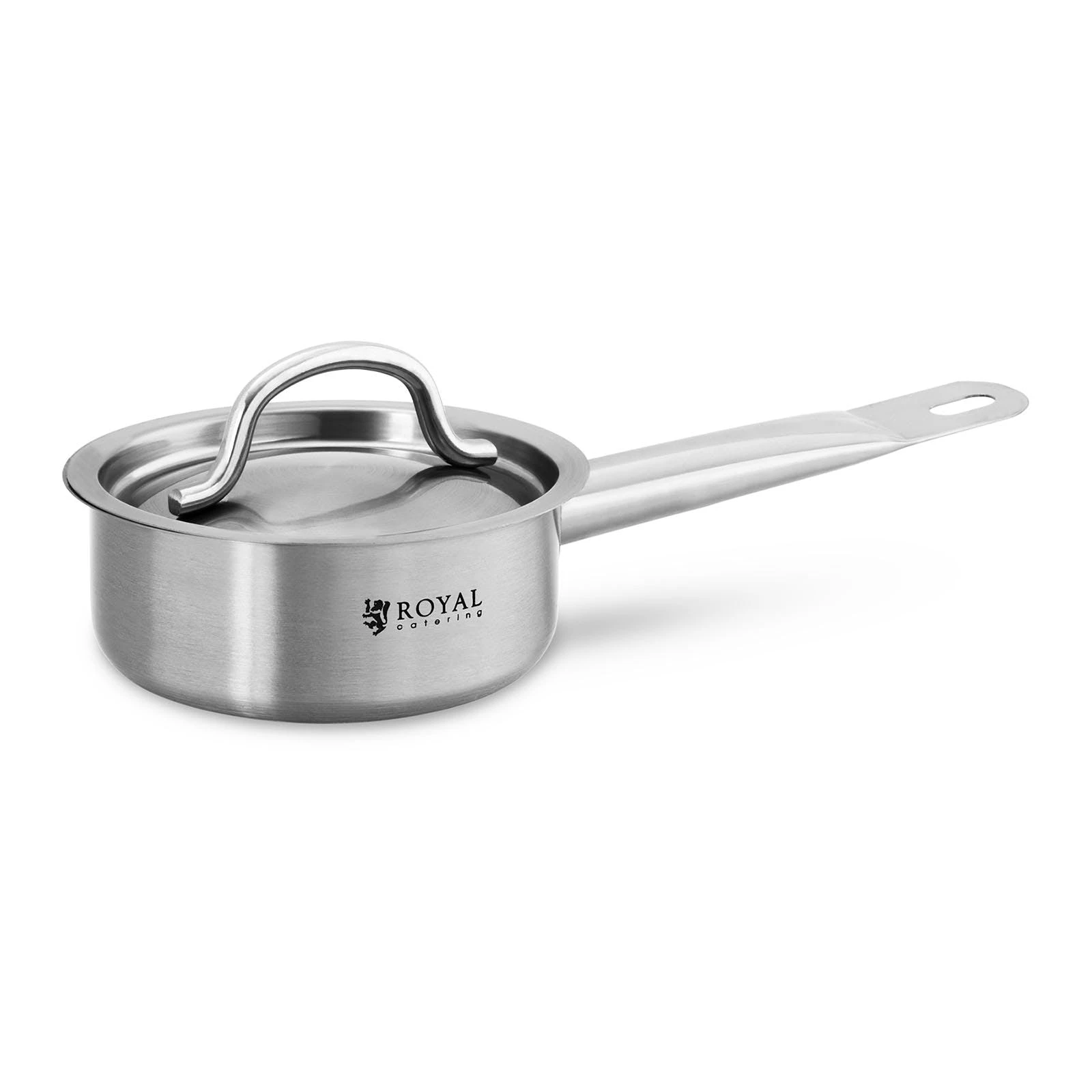 Stielkasserolle – Ø 14 cm In der Küche gibt es große und kleine Töpfe, aber ein Topf darf niemals fehlen – die Stielkasserolle von Royal Catering. Immerhin ist dieser Topf für das geschmackliche i-Tüpfelchen zuständig. Eine feine Soße, die heiß serviert das perfekte Finish für alle saftigen Gerichte darstellt.