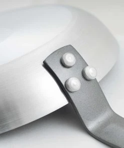 Die Stalgast Bratpfanne aus Aluminium mit einer Teflonbeschichtung hat einen genieteten Flachstiel aus Stahl.