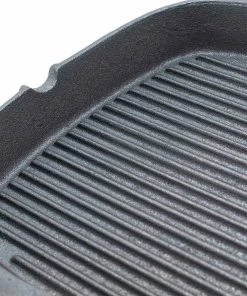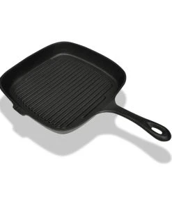 Die quadratische und gerillte Stalgast Grillpfanne aus Gusseisen ist ideal zum Servieren von heißen Gerichten, weil sich die Speisen durch den dicken Boden lange warm halten.