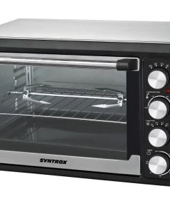 45 L Minibackofen mit Umluft und Drehspieß – interessantes Modell von Syntrox GermanyEin ordentlicher Backofen gehört in eine jede Küche genau wie ein guter Kühlschrank, Wasserkocher und Kaffeemaschine. Aber was ist, wenn die Küche ziemlich knapp bemessen ist und nur wenig Platz bietet? In dem Fall wäre es eine gute Option, sich für einen praktischen Stand Mini Backofen zu entscheiden. Hier auf der Seite von Syntrox Germany erhalten Sie den 45 Liter Minibackofen mit Umluft und Drehspieß, der sich als gute Alternative zu einem typischen Backofen anbietet. Der 2.000W starke Minibackofen von Syntrox Germany ist ein richtiges Multitalent und überzeugt mit seinen Funktionen. Er ist vielseitig einsetzbar, sodass Sie auf den großen Bruder verzichten können..Leistungsstarkes Multitalent – kompakt und modernDieser 45 Liter Mini Backofen aus dem Hause Syntrox Germany ist ein leistungsstarkes Multitalent und überzeugt mit seiner kompakten und modernen Bauart. Es ist ein Stand Mini Backofen, der einfach auf der Küchenarbeitsplatte oder auf dem Tisch platziert und zum Einsatz gebracht wird. Vielseitige Einsatzmöglichkeiten sind mit dem Minibackofen gegeben, da er auch mit praktischen Zubehörartikeln geliefert wird. Mit dem Miniofen können Sie, wenn Sie den Drehspieß verwenden, nämlich beispielsweise auch Hähnchen oder Würstchen grillen. Zudem ist er mit einer Umluftfunktion versehen, sodass weitere Einsatzmöglichkeiten gegeben sind. Dieser kleine Minibackofen ist mit einem stufenlos regulierbaren Timer versehen. Dank der Abschaltautomatik sind Sie immer auf der sicheren Seite, dass auch wirklich nichts anbrennt. Hinzu kommt, dass der Miniofen ein schickes Design mit sich bringt. In jeder Küche wird das elegante Bild unterstrichen und abgerundet. Der Stand-Minibackofen integriert sich optimal, egal, wo Sie den Ofen platzieren. Damit Sie auch immer die köstlichen Speisen im Blick haben, wurde der Minibackofen mit einer hitzebeständigen Glastür versehen. So brauchen Sie nicht erst die Tür öffnen, um sich einen Überblick zu verschaffen. Zum Lieferumfang des Multitalentes gehört übrigens auch der Gitterrost, auf dem Sie beispielsweise eine Pizza platzieren können und ein Backblech. Falls Sie gerne Hähnchen essen, verwenden Sie einfach den Drehspieß, um so die Köstlichkeit rundum gleichmäßig zu grillen.
