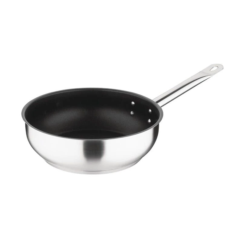 InduktionsfähigRostfreier StahlSpülmaschinenfestProfessionelle Edelstahlpfannen mit Platinum Plus Teflon-Antihaftbeschichtung. Geeignet für Induktion.Produktart: SauteusenMaße: 8(H) x 24(Ø)cmMaterial: EdelstahlGewciht: 1,05kg