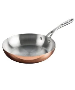Abmessung 280 x 60 mmFassungsvermögen: 3,3LtrInduktionskompatibelThermocore-Sandwichbasis aus AluminiumKupfer-FinishBleiben Sie cool genietete GriffeGehäuse: Kupfer (0,4 mm), Aluminium (1,5 mm) und Edelstahl 430 (0,6 mm)Hergestellt aus Aluminium-Thermokern zwischen Edelstahl, mit einer Außenschicht aus Kupfer und vernieteten, kühl bleibenden Griffen. Die dreifachwandige Konstruktion sorgt für eine gleichmäßige Wärmeverteilung ohne Hotspots und damit für gleichmäßige Ergebnisse. Innen gebürstet, außen strapazierfähiges, hochglanzpoliertes Kupfer.Produktart: BratpfannenMaße: 6(H)cmMaterial: Edelstahl & AluminiumGewciht: 1,42kg