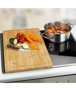 Eine zusätzliche, mobile Arbeitsfläche sowie ein Schneidebrett und Schutz für den Herd – eine clevere 3in1 Kombination bietet diese stabile Herdabdeckplatte Bambus. Die Bambusplatte dient als ideale Unterlage beim Teigkneten und -ausrollen oder auch als großes Schneidebrett für Fisch, Fleisch oder Gemüse. Besonders praktisch: die integrierte Saftrille. Natürlich kann das Schneidbrett auch direkt als dekorative Servierplatte genutzt werden. Eingesetzt als Herdabdeckplatte bietet sie zuverlässigen Schutz für die Herdplatten. Die vier rutschfesten Silikonfüße sorgen für sicheren Halt. Die Herdabdeckplatte eignet sich auch zum Abstellen von warmen Töpfen und Pfannen. Das Allround-Talent für die Küche ist aus Bambus gefertigt, welches nicht nur hart und widerstandsfähig ist, sondern auch unter ökologischen Aspekten klare Vorteile bietet. Bambus ist ein schnell nachwachsender Rohstoff.